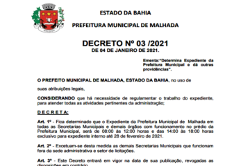 Prefeito de Malhada edita decreto com medidas para conter o avanço da Covid-19