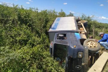 Motorista dorme ao volante e caminhão cai de ponte Malhada