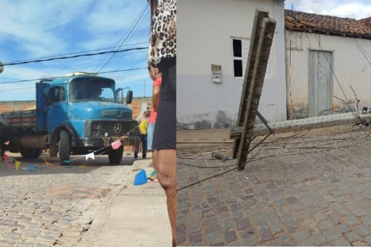 Caminhão bate em poste e deixa casas sem energia em Julião, em Malhada