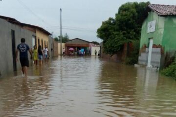 Chuva forte transforma rua em ‘rio’ em Malhada