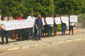 Servidores de Malhada afastados realizam protestos em frente ao Fórum de Carinhanha