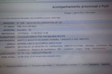 “Coligação Unidos por uma Malhada Melhor pede impugnação de candidato a vice-prefeito e vereador da coligação “Pra Malhada avançar mais” por ausência de filiação partidária”