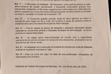Câmara de Malhada aprova por unanimidade projeto que permite transporte gratuito para estudante de ensino superior