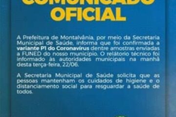Variante P1 da Covid-19 foi confirmada no município de Montalvânia