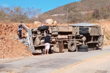 Caminhão capota e deixa duas pessoas feridas na BA-148 em Rio de Contas