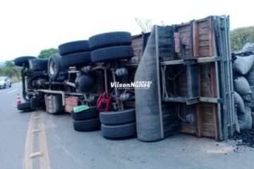 Montealtense tomba caminhão carregado com carvão na BR-135 em Bocaiúva