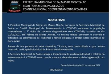 Palmas de Monte Alto registra sétima morte por complicações da Covid-19