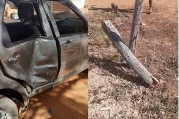 Motorista derruba poste após perder controle da direção de carro em Palmas de Monte Alto
