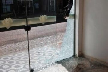 Bandidos quebram vidro da porta da Funerária Pax Nacional em Palmas de Monte Alto