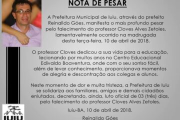 Prefeito de Iuiú emite nota de pesar pelo falecimento do professor Cloves Alves