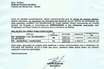 Vitor Bonfim comunica aprovação de energia para comunidades rurais de Palmas de Monte Alto