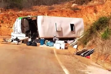 Micro-ônibus tomba na BA-148 em Rio de Contas