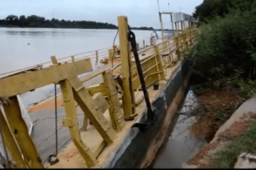 Balsa afunda no porto do Rio São Francisco em Manga