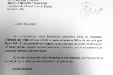 Ivana Bastos solicita pavimentação da estrada do Angico, em Carinhanha