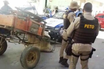 Colisão entre charrete e viatura da PM deixa homem ferido em Santa Maria da Vitória