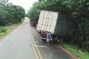 Acidente envolvendo duas carretas e um caminhão baú deixa motorista ferido em Santa Maria da Vitória