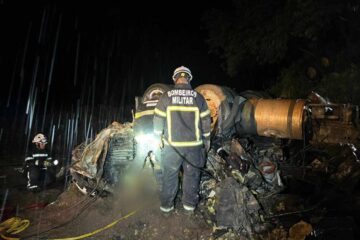 Motorista morre após carreta carregada colidir com rocha em Roda Velha