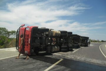 Carreta carregada de semente de algodão vira na na BR-030 em Malhada