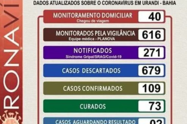 Urandi contabiliza 106 casos confirmados de coronavírus