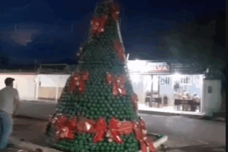 Árvore de Natal com mais de 4 metros é construída com garrafas pets em Carinhanha
