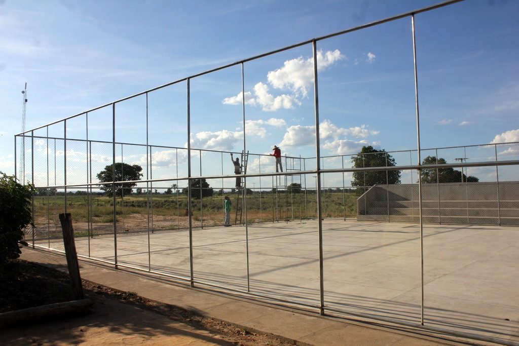 Em Barra do Parateca a Prefeitura está construindo mais uma quadra de esportes. A obra está bem adiantada.