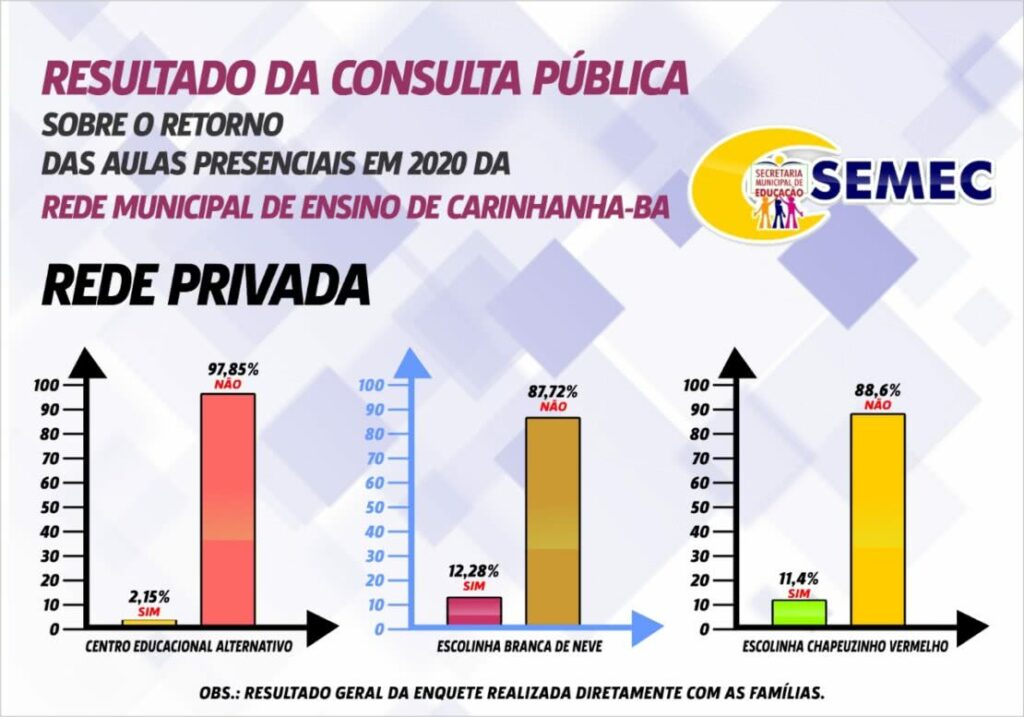 A secretaria de Educação Edésia Lisboa afirmou nesta qunta-feira (27), que irá respeitar a decisão dos carinhanhenses sobre o tema. A enquete foi realizada com as famílias dos alunos da rede municipal e privada.