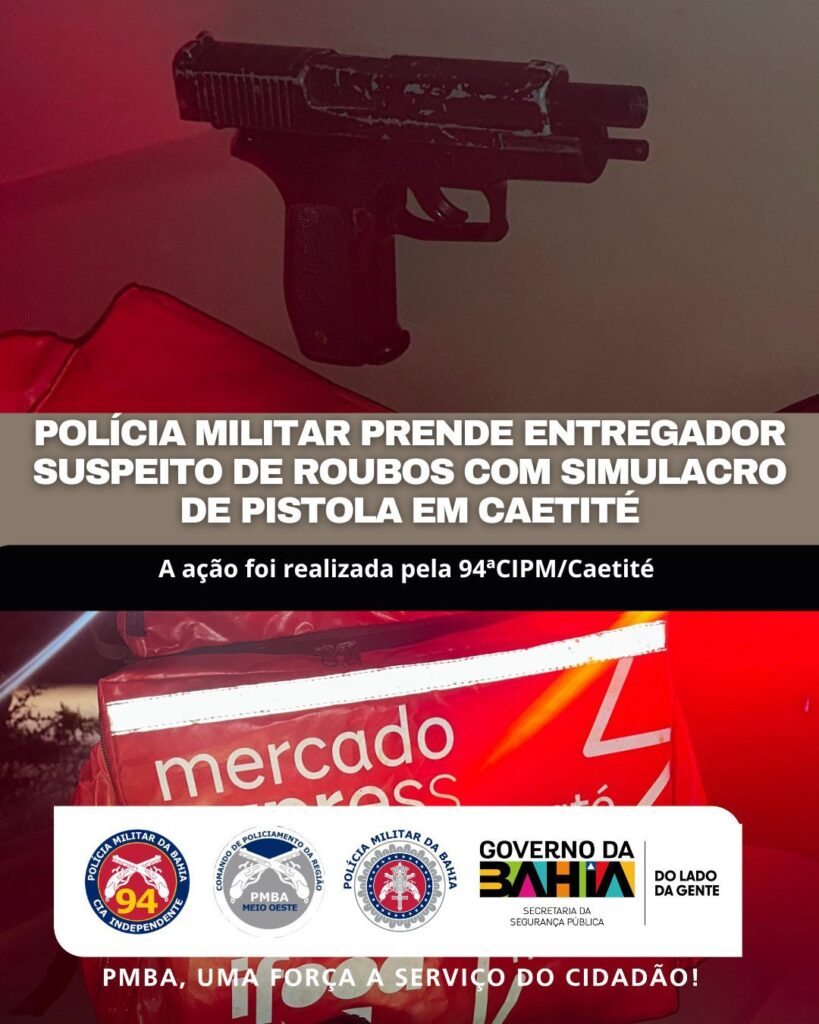 CAETITÉ — Um entregador suspeito de cometer roubos na cidade de Caetité, na região sudoeste da Bahia, foi preso por policiais da 94ª CIPM, na noite de sábado (28), durante rondas ostensivas na BR-122, sentido Maniaçu.