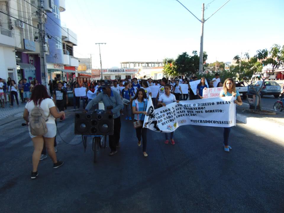 A passeata foi realizada pelos estudantes dos colégios Luiz Viana, CEEP, Modelo, Gercino Coelho e Idalice Nunes. Os estudantes concentram no Centro de Cultural, visando serem atendidos pelo Governador.