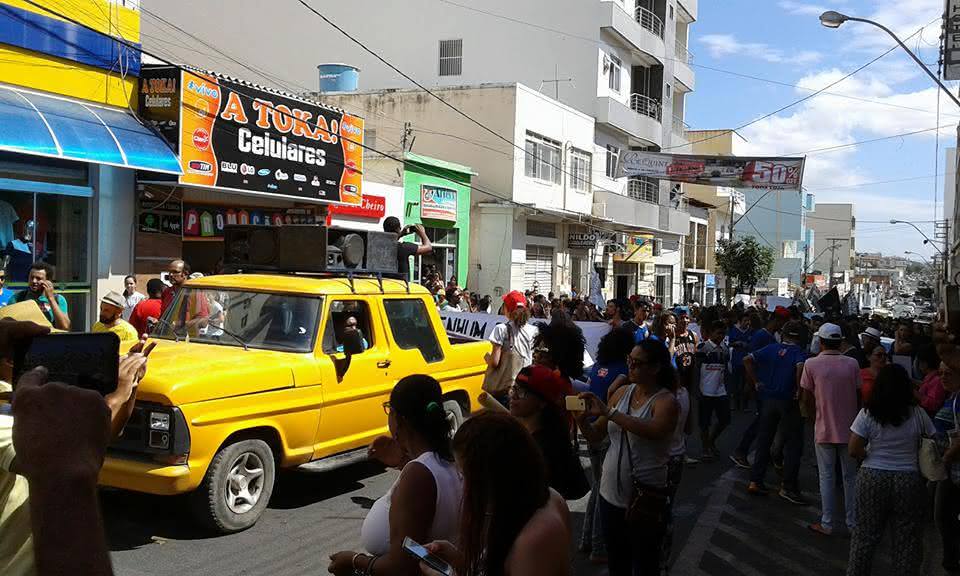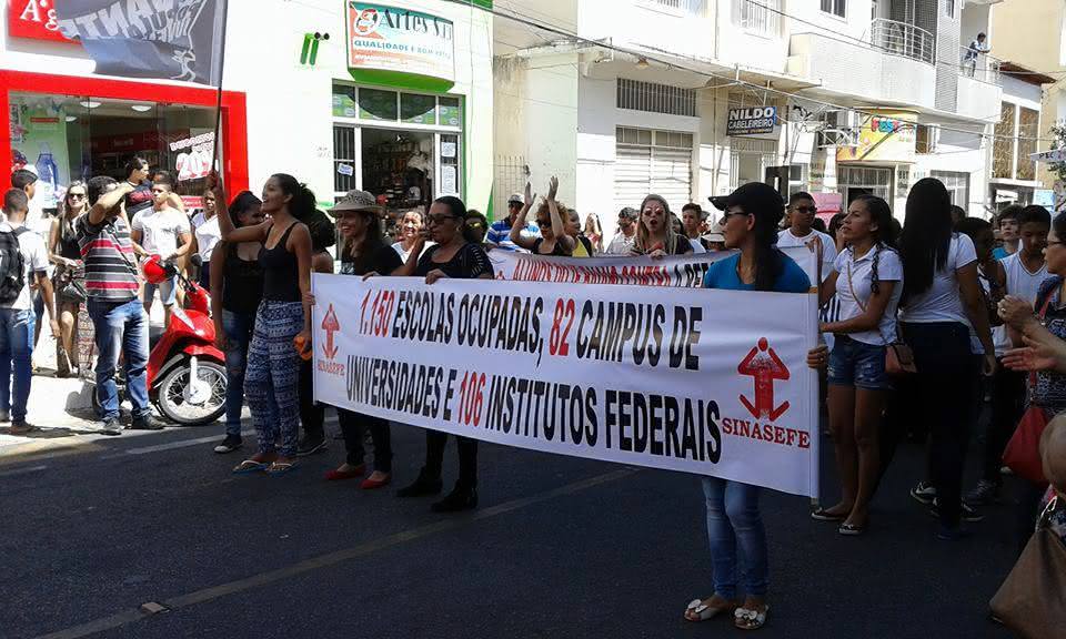 Durante a concentração, membros do “Levante Popular da Juventude” alunos e professores da UNEB e do IFbaiano chegaram com faixas, cartazes e carro de som contra a aprovação da PEC 241 no senado federal. Segundo os líderes do movimento, a PEC 241 é um “arrocho contra estudantes e servidores públicos”. Antes de chegarem à Praça do Bradesco, aconteceu uma caminhada pela Avenida Barão do Rio Branco, reunindo cerca de 300 pessoas.