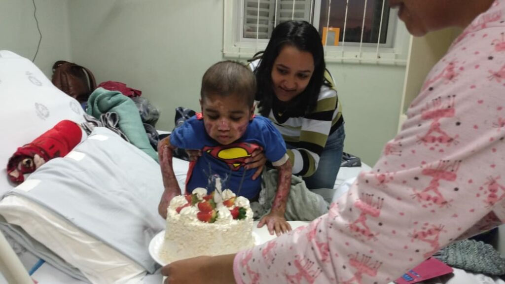 O pequeno Luiz Gustavo Moreira dos Santos, de 4 anos de idade, precisou ter os dois pés amputados após contrair uma bactéria, depois de passar por um processo cirúrgico para colocar cateter.
