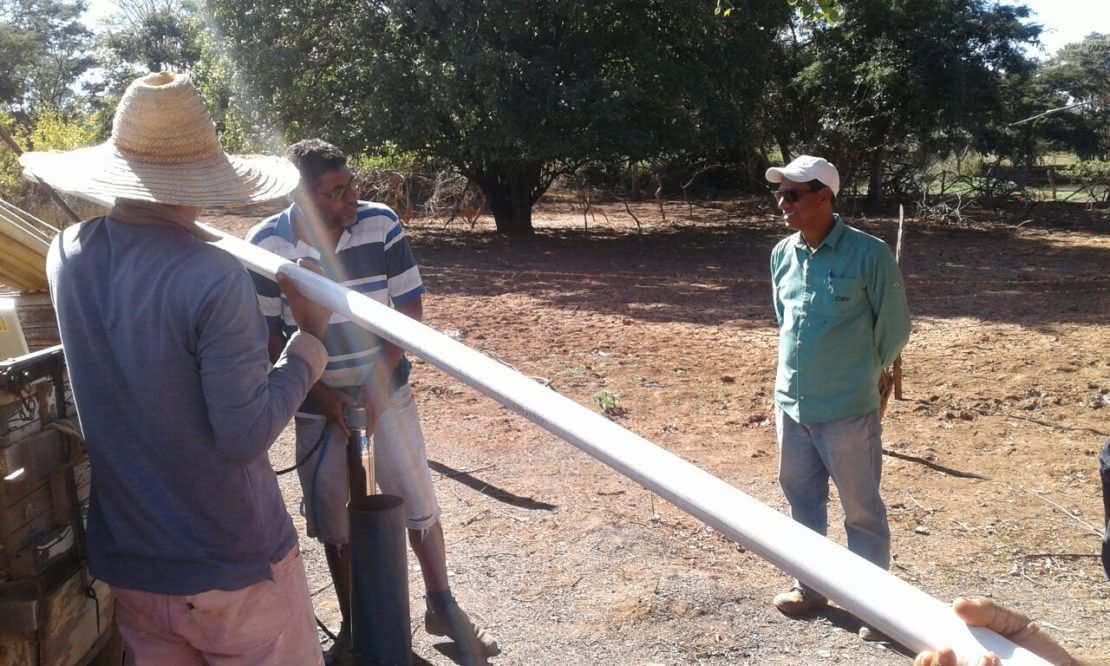 Na tarde desta quinta-feira (14), o prefeito de Feira da Mata no Oeste da Bahia, Aparecido Alves da Silva – Cidim (PPS), juntamente com os secretários Adauto Vilas Boas – (Obras), Miguel Soares – (Transportes), e o vereador Gilmar, realizaram a entrega do poço artesiano na comunidade dos Neves. O poço com vazão de mais de 28 mil litros de água irá fornecer este precioso líquido para aproximadamente 20 famílias.