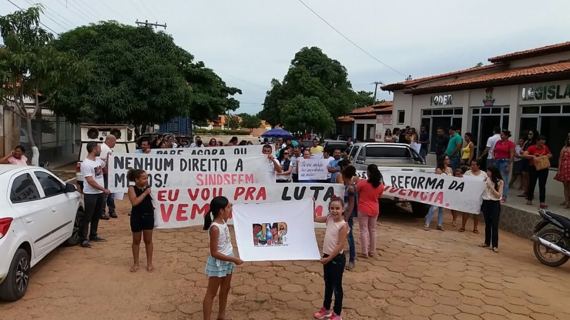 Funcionários de Feira da Mata protestam contra a Reforma da Previdência
