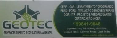 A GeoTec Consultoria tem o objetivo de atender a demanda local e regional quanto a assessoria técnica relacionado as certificações de imóveis rurais pelo Incra, questões ambientais, empresariais, dentre outros. A mesma dispões de uma equipe técnica qualificada e atende a legislação vigente.