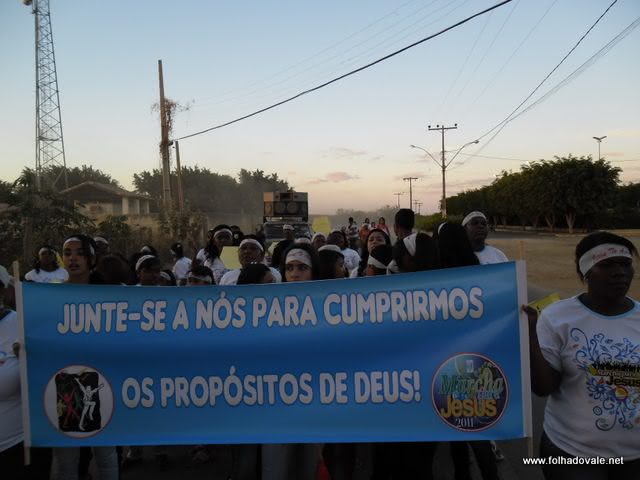 À tarde, a partir das 16h00, aconteceu à marcha para Jesus, que percorreu as principais ruas e avenidas, onde se reuniram mais de 1000 pessoas de várias igrejas do município. Mais de 20 igrejas se juntaram para a grandiosa concentração de fé. A idealizadora do evento, Messia, da 1ª Igreja Batista, destacou a participação das igrejas e do grande número de pessoas. A parada aconteceu na Praça Santa Cruz, no Centro.