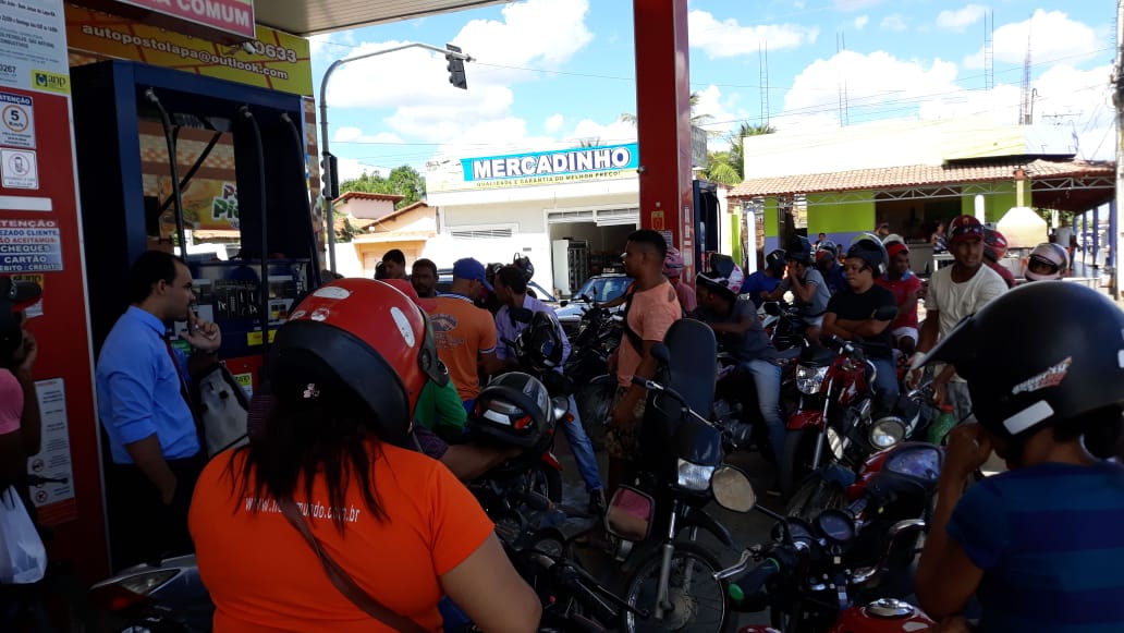 Com a falta de combustíveis por conta da paralisação dos caminhoneiros, os motoristas enfrentam filas nos postos de combustíveis na cidade de Bom Jesus da Lapa, no Oeste da Bahia. Atrás da gasolina motociclistas e motoristas lotaram o posto Satélite, no final da manhã desta quarta-feira (23).