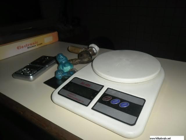 Com ele foi encontrado duas balanças de precisão, dois cachimbos, 18 gramas de cocaína e maconha.