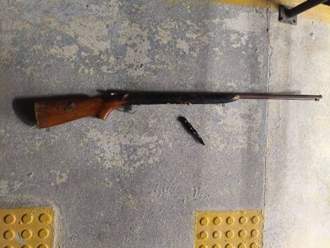 Durante a abordagem, um homem de 22 anos foi encontrado portando uma espingarda de fabricação artesanal, do tipo “chumbeira”, além de um canivete. O material foi apreendido no local.