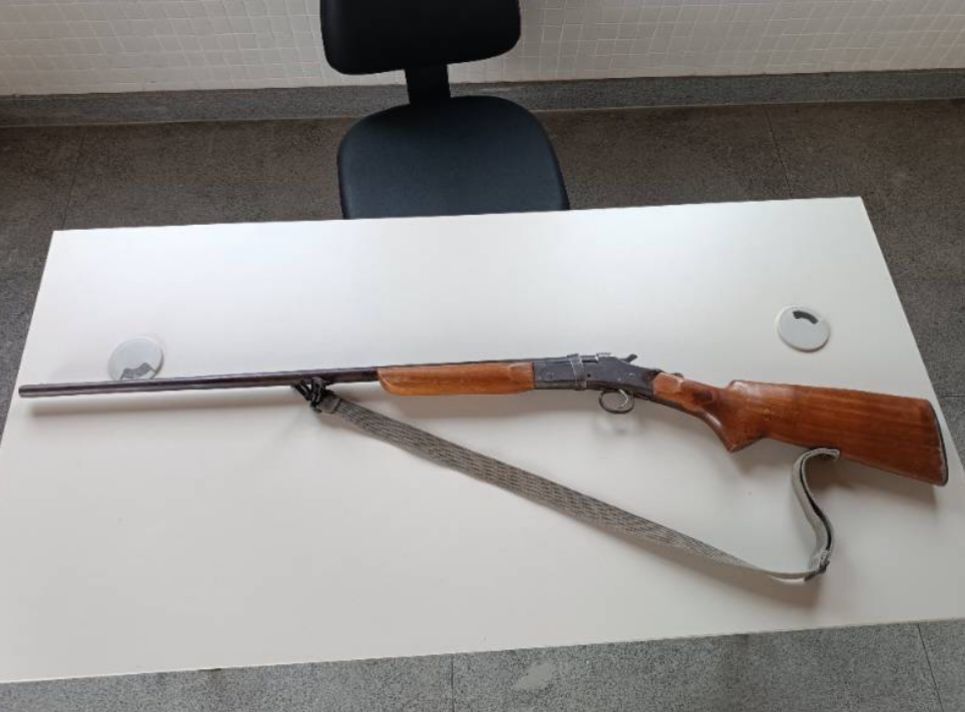 A guarnição deslocou-se até a localidade, onde o suspeito foi localizado e abordado. Durante as diligências, os policiais tomaram conhecimento de que a arma estaria sob posse do pai dos envolvidos, o qual, ao ser informado da situação, entregou voluntariamente a espingarda.