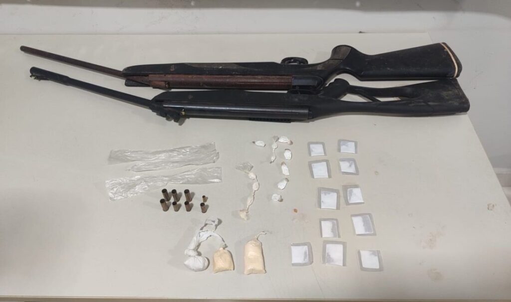 Os policiais realizavam rondas na Rua Marechal Deodoro da Fonseca, no bairro Bela Vista, e avistaram um homem em atitude suspeita. Ao proceder com a abordagem, foram encontradas com o suspeito armas e drogas.
