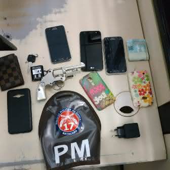 Diante das informações, os policiais verificaram que os suspeitos moravam na cidade de Candiba, onde foram localizados .No local foi apreendido dois aparelhos de celulares e um revólver calibre 22.