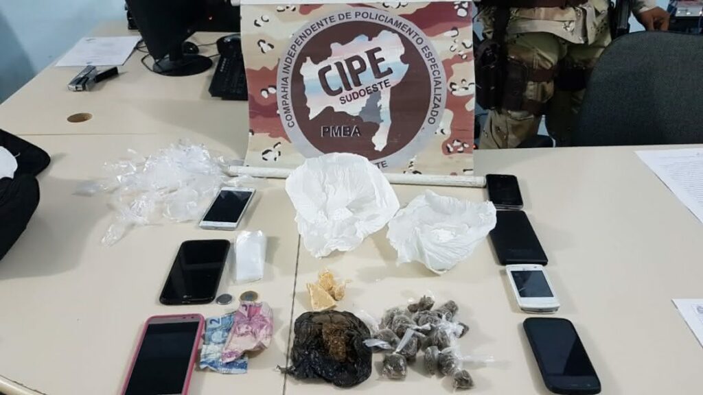 Com o suspeito foi encontrado 8 petecas de substância análoga à maconha e R$ 8,50 em espécie. Na residência de Vandinho foi encontrando mais 9 petecas de substância análoga à maconha, um saco plástico pequeno com um pedaço maior de uma substância semelhante à maconha, outro com pedras de crack e dois sacos pequenos com substâncias aparentando ser cocaína, além de vários sacos plásticos para acondicionamento das drogas e 6 aparelhos celulares.