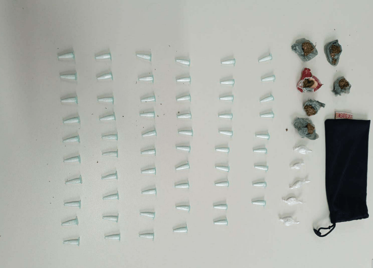 O suspeito foi acompanhado pela guarnição e abordado em casa. No local, ele confessou a prática criminosa e indicou onde mantinha o restante da droga. Durante a ação, foram apreendidas 59 porções de substância análoga à cocaína embaladas em pinos, 5 porções de cocaína acondicionadas em plástico e 6 porções de substância análoga à maconha.