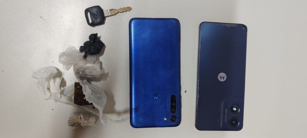 A equipe fez o acompanhamento e posteriormente a abordagem. Na busca pessoal, foram encontradas no bolso do passageiro, algumas porções de substância análoga à maconha.