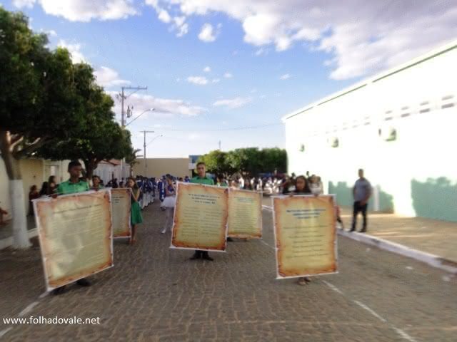 O evento organizado pelo Colégio Municipal Eliza Teixeira de Moura, se renova a cada ano. O secretário de Educação Domingos Rodrigues Porto Neto, disse a reportagem do portal Folha do Vale, que 1500 estudantes do ensino médio participaram do ato cívico, com uniformes, instrumentos musicais e passos marcados.