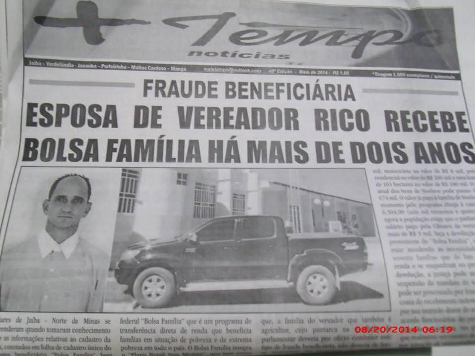 Jaíba:esposa de vereador recebe Bolsa Família há mais de dois anos