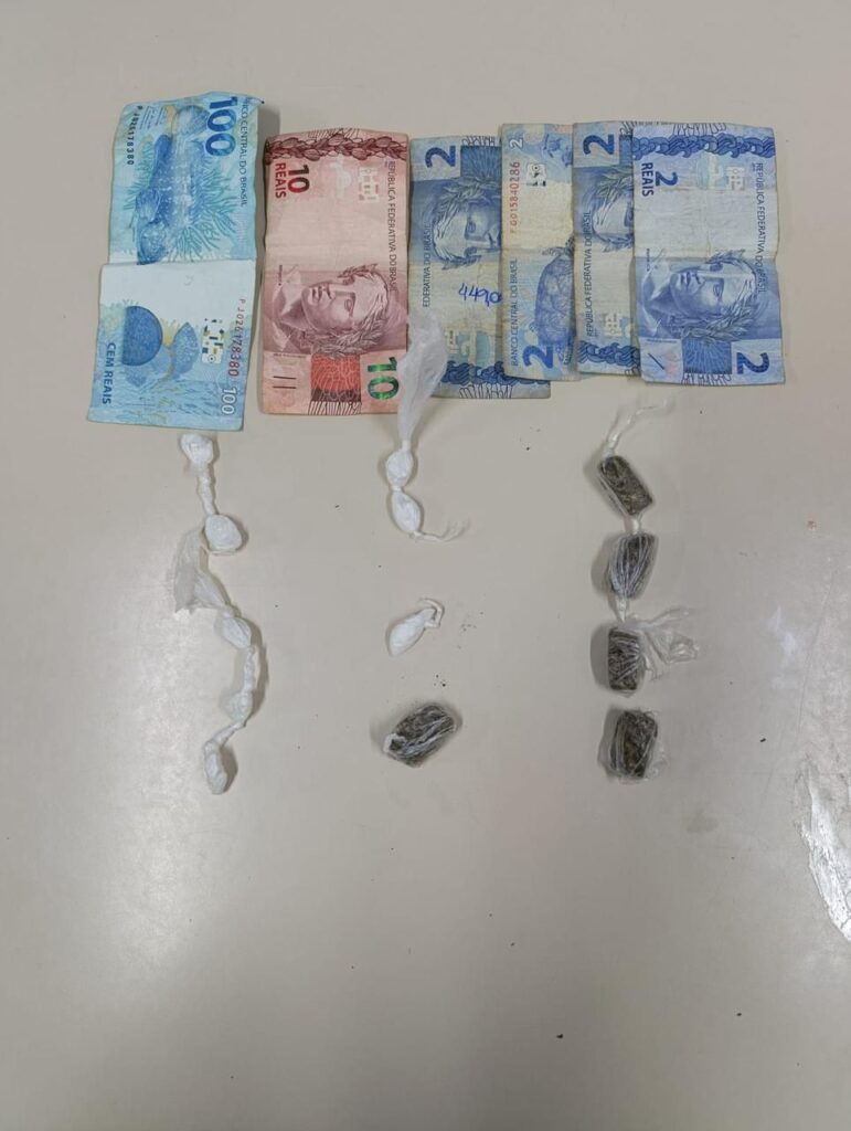 Durante a abordagem, os militares confirmaram que o material dispensado continha porções de drogas já fracionadas, o que reforça a suspeita de comercialização. Além dos entorpecentes, também foi encontrada uma quantia em dinheiro.