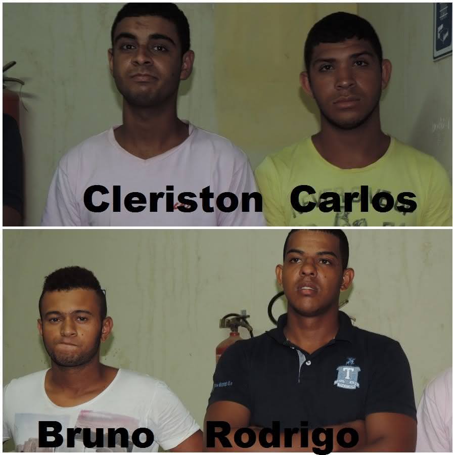 A Polícia Militar prendeu nesta sexta-feira quatro elementos acusados de roubarem lojas de celulares em Guanambi. A guarnição comandada pelo Tenente Veloso apresentou na Delegacia Carlos Roberto de Jesus Brito, 20 anos morador na Avenida Mato Grosso do Sul no Bairro Brasília, Cleriston Ramos Pereira, 19 anos, residente à Rua Jota 55 – Bairro Monte Azul, Bruno da Silva Batista, 18 anos da Avenida Mato Grosso do Sul e Rodrigo de Jesus de Brito, 25 anos, com endereço à Rua Mato Grosso do Sul, no mesmo bairro.