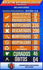 De acordo com o boletim epidemiológico de Malhada, todos infectados pela covid estão em isolamento domiciliar. A secretaria alerta sobre o uso de máscara e álcool em gel.