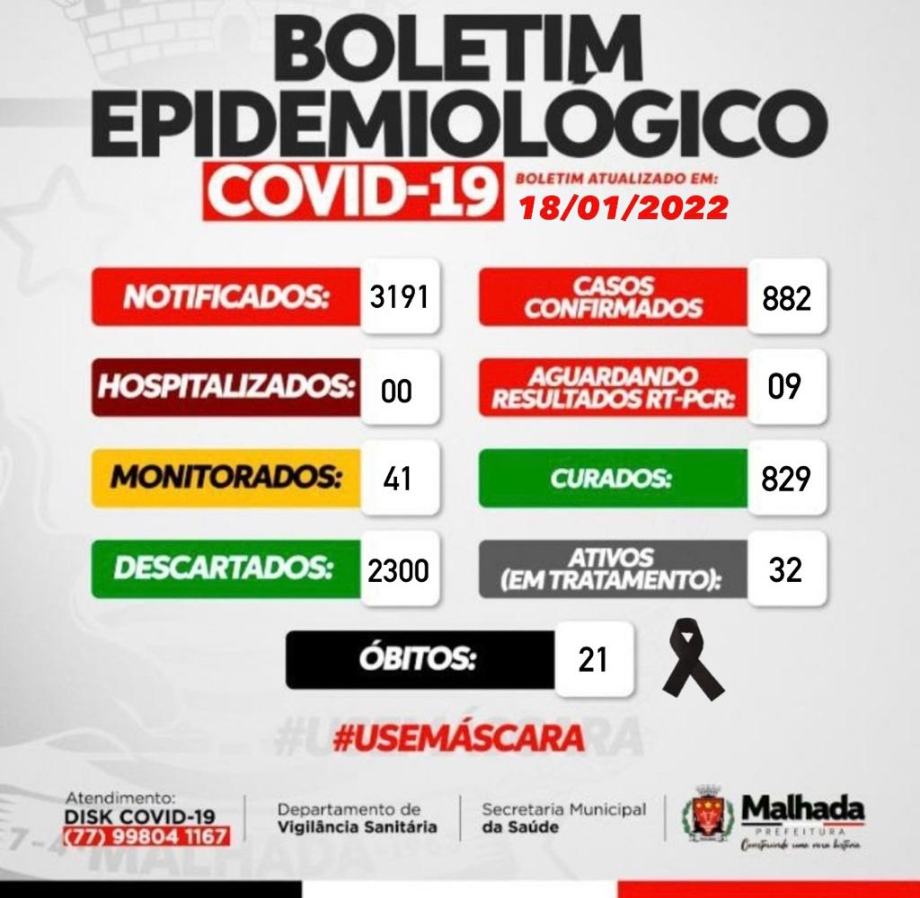 Ao todo, Malhada contabilizou 882 casos confirmados, sendo que 829 pacientes se curaram e outros 21 morreram por complicações da doença.