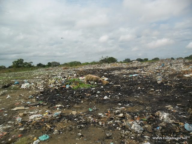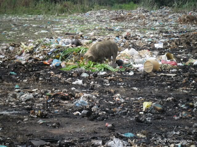 A poucos metros do centro da cidade, próximo ao campo de futebol pode-se ver porcos remexendo o lixo jogado no lixão da cidade.